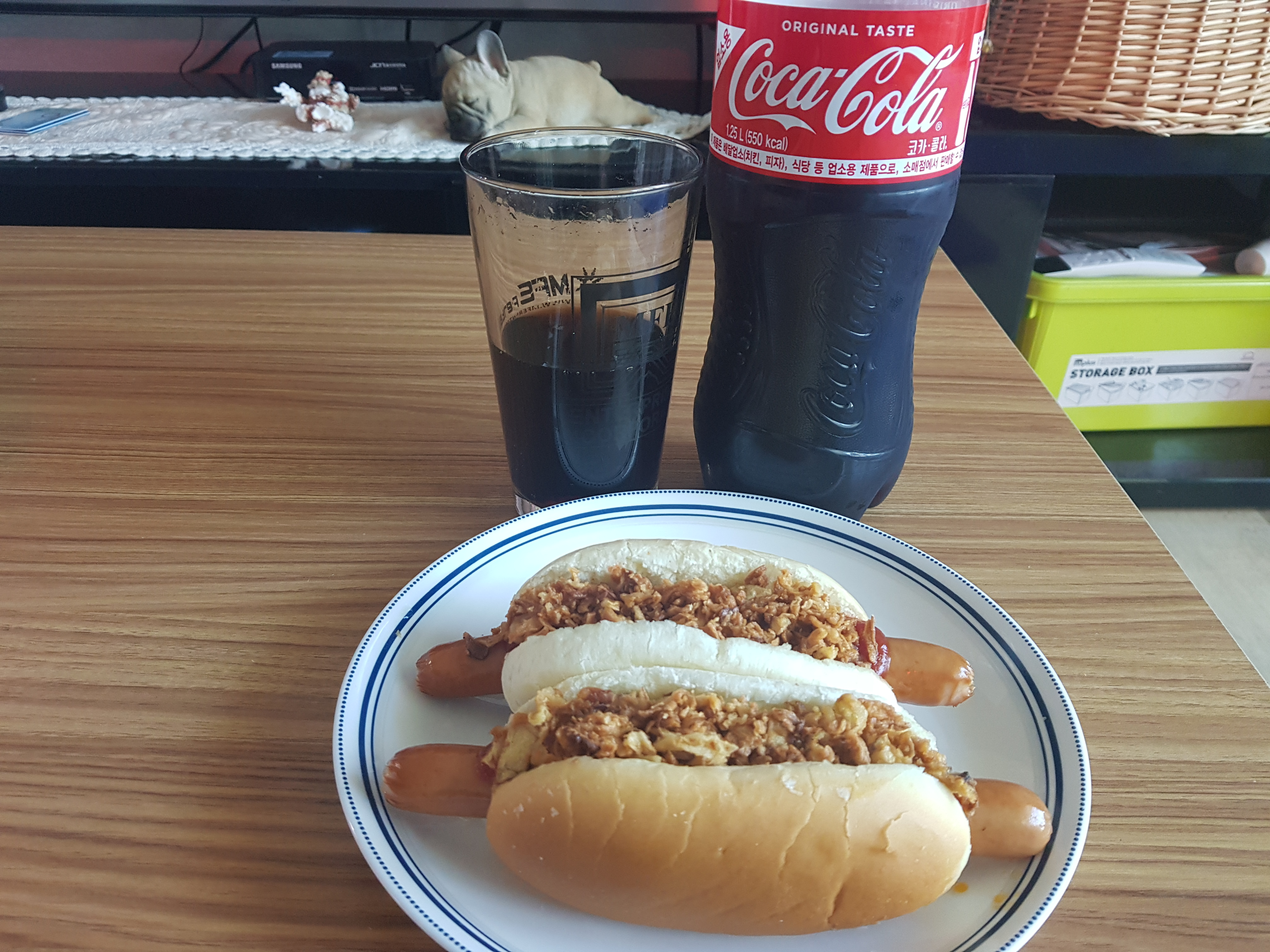 저녁에 먹는 거라 핫도그에